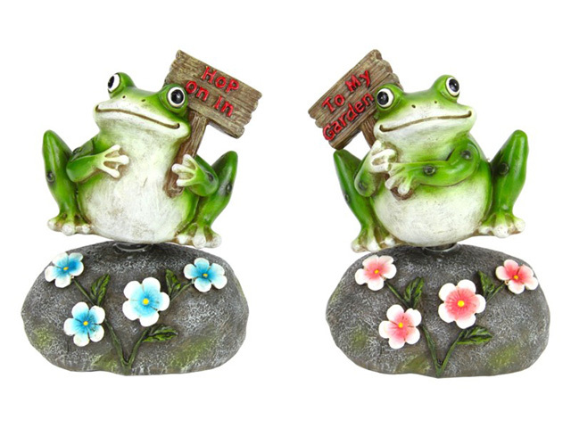 24CM SITTING GREEN FROG W/FLOWER FINISH